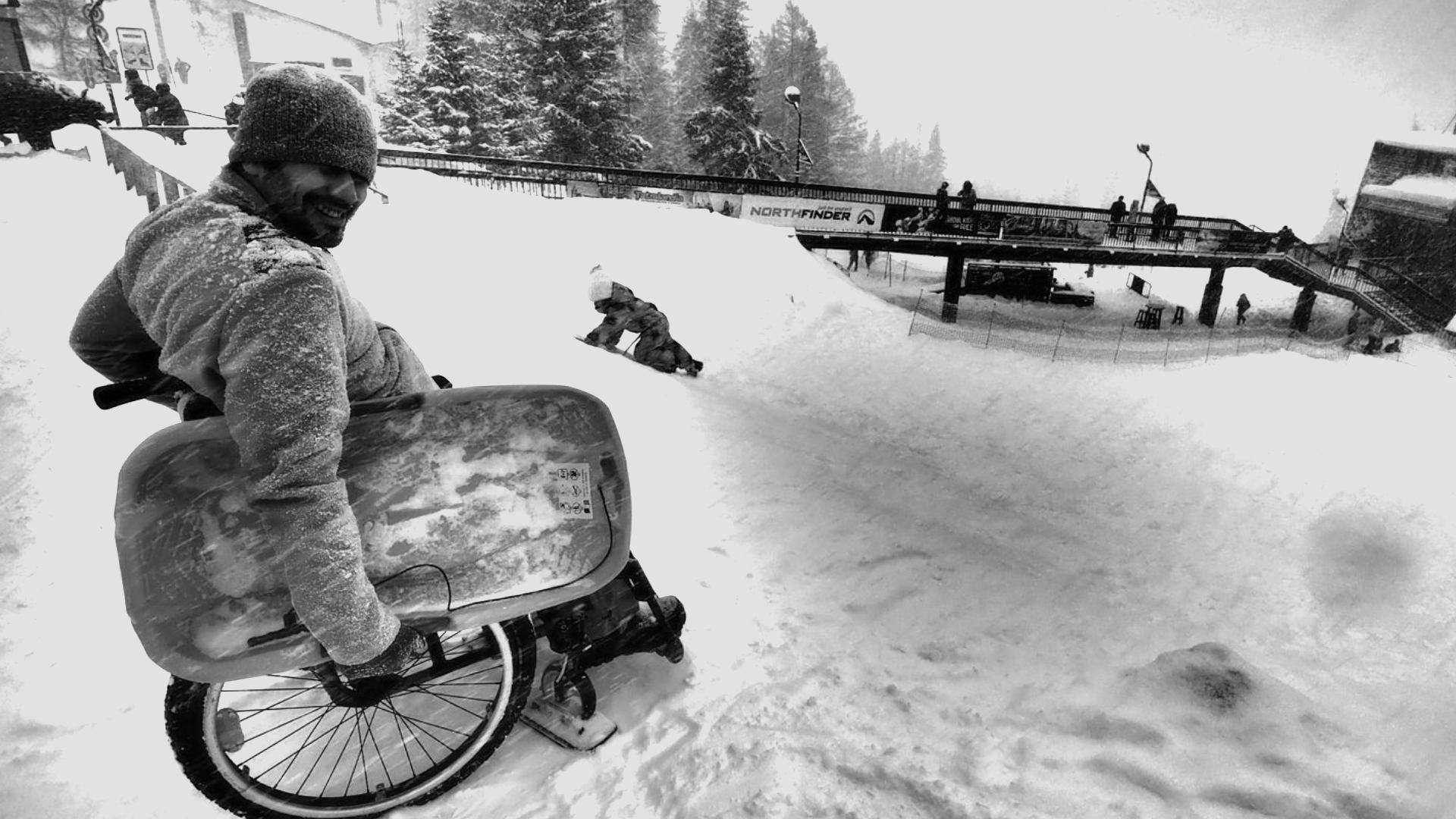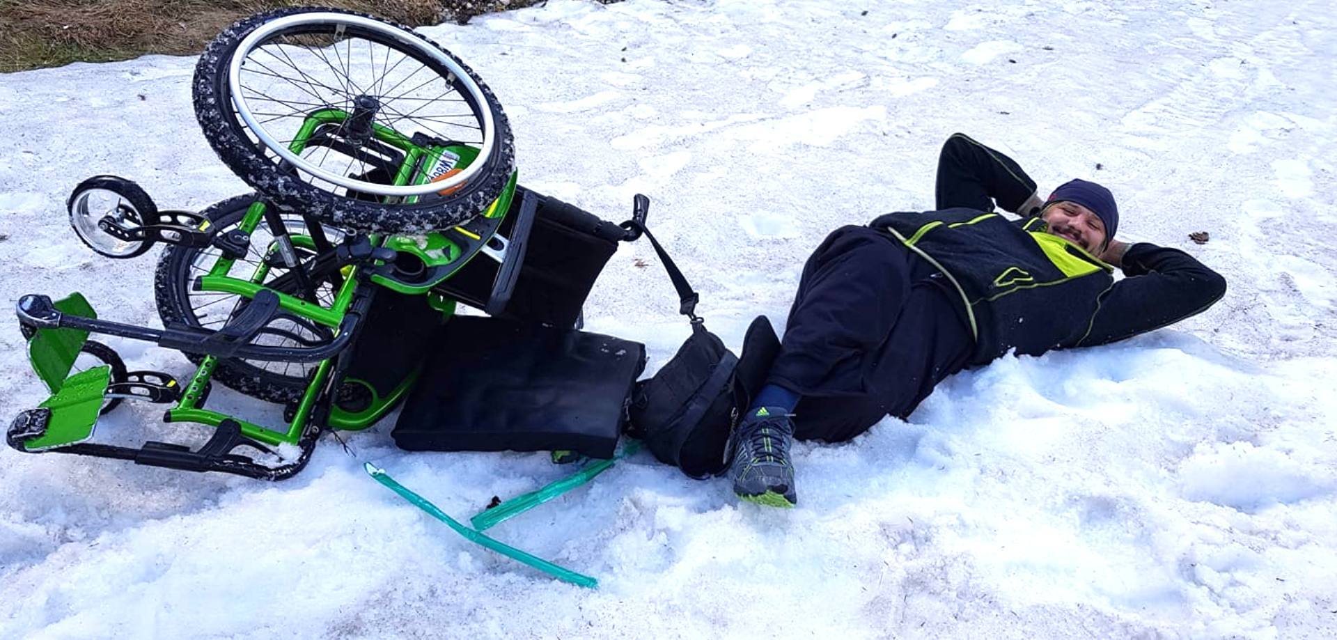 Úplne vlastný manuál na pohyb v zlom teréne, ľad a sneh nevynímajúc, má Tomáš Zelina, milovník adrenalínu všetkého druhu. Na svojom konte má napríklad aj „zjazd“ po chodníku z Hrebienka, pričom si na vozíku iba vymenil predné kolieska za krátke lyže. „Používajú sa na bežné detské kočíky, aby sa v snehu nezabárali, tak som ich vyskúšal aj na invalidnom vozíku. Bolo to v pohode, nedá sa to ani označiť za lyžovanie. Šiel som celkom pomaly a vedľa mňa sa rovnakou rýchlosťou spúšťala dcérka na boboch.“